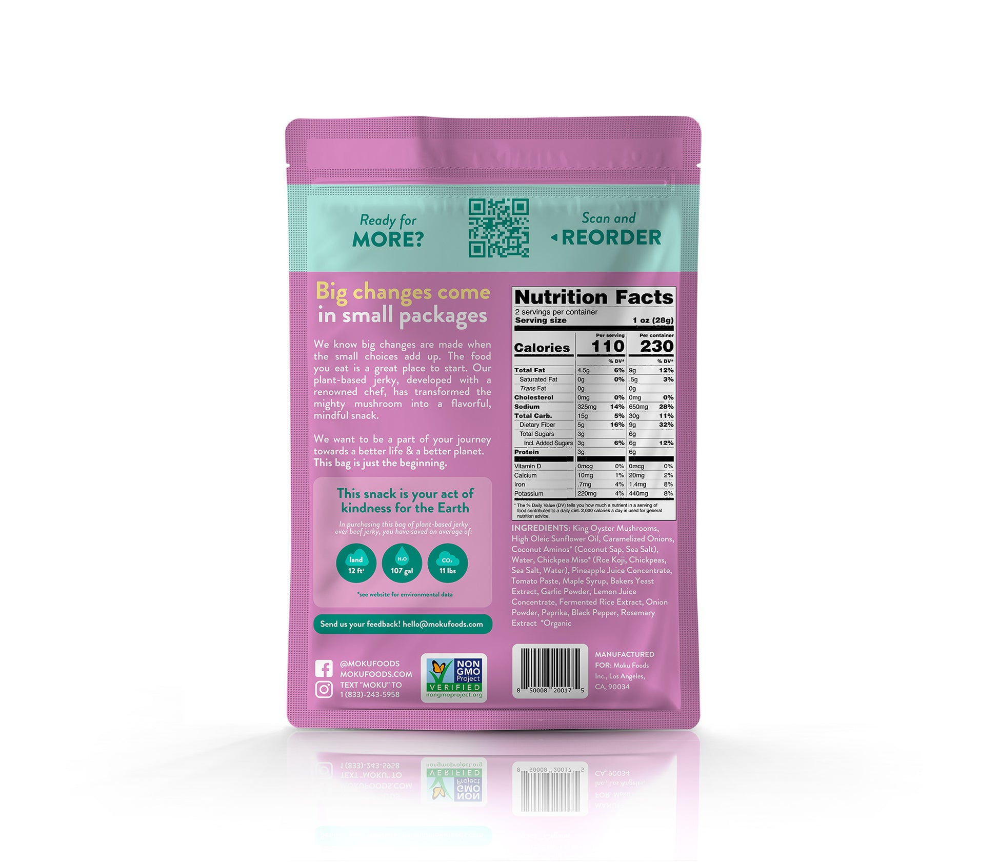 A nostalgic Hawaiian favorite with sweet caramelized onions and rosemary flavor that will take your taste buds on a sensory journey. A savory mushroom jerky packed with 9g of fiber and 6g of protein per bag.100% happiness guarantee or your money back!